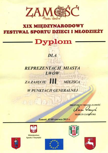 За підсумками усіх видів фестивальних змагань збірна команда Львівщини посіла III місце та отримала кубок та грамоту від мера міста Замость Марчина Замоскі.