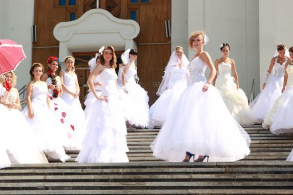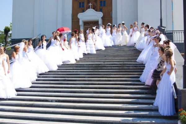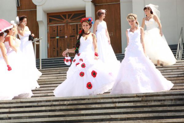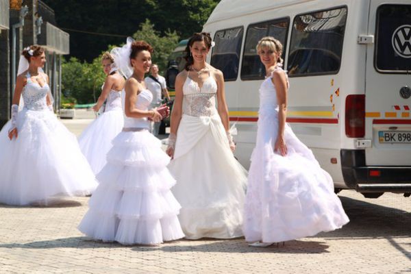 Парад наречених привернув увагу перехожих. Водії сигналили, а молодь знімала їх на мобільні телефони.