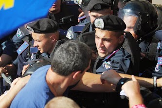 Тим часом по периметру паркану, який встановили за вказівкою «дбайливої» влади на східцях Київради, стояли «тітушки». Ці «вчителі фізкультури» кримінальної зовнішности були покликані забезпечувати недоторканність КМДА від народу. Допомагали «браткам» у їхній справі півтисячі спецпризначенців у повній бойовій амуніції. Молодики зробили декілька нападів на журналістів та активістів, кинули димову суміш у гущу мітингувальників.