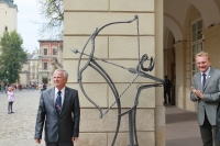 Пам’ятні знаки відкрили міський голова Львова Андрій Садовий, президент Львівської обласної федерації стрільби з лука Олександр Калініченко та автор - скульптор Мирослав Дидишин.