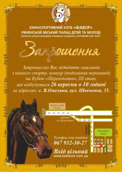 Щорічні змагання влаштовуються Кінноспортивним клубом «Фавор» Рівненського міського палацу дітей та молоді. Запрошені учасники з різних клубів України, верхи на елітних спортивних конях, змагатимуться у жвавості, швидкості та вмінні подолати маршрут не збивши жодної перешкоди.