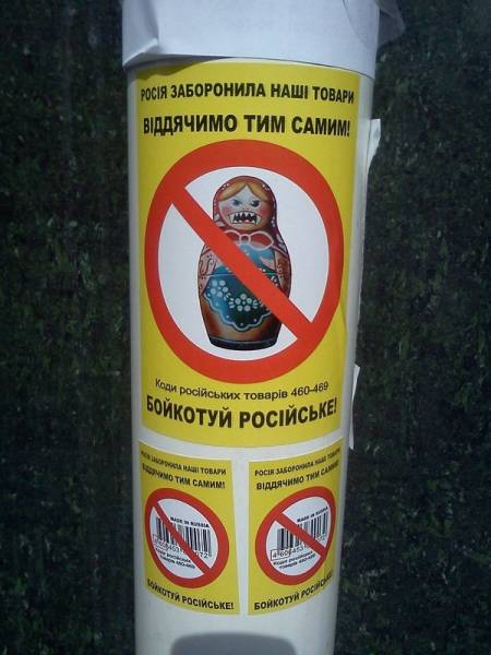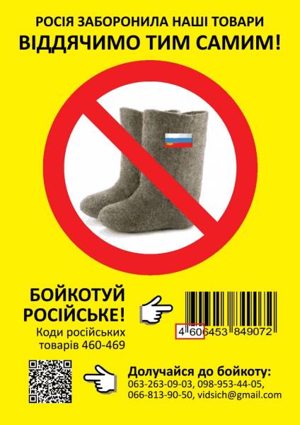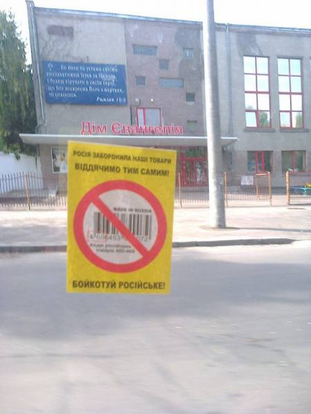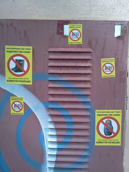Поширення таких плакатів, листівок, наліпок проходить також в Херсоні, Луганську, Луцьку, Івано-Франківську, Донецьку, Димитрові, Кам’янець-Подільську, Києві, Житомирі, Львові, Броварах, Харкові, Могилів-Подільську, Тернополі, Одесі та Черкасах в рамках загальноукраїнської кампанії «Не купуй російське!», а невдовзі вони мають з’явитися в усіх регіонах України.