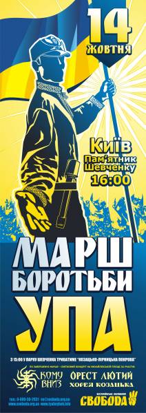 О 14:30 в парку Тараса Шевченка розпочнеться «Кобзарсько-лірницька Покрова». О 16:00 біля пам'ятника Тарасові Шевченку розпочнеться віче, по завершенні якого націоналісти центральними вулицями Києва пройдуть Маршем Боротьби.