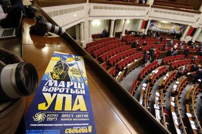 Зауважимо, що зранку 11 жовтня, перед початком пленарного засідання парламенту свободівці вивісили в сесійній залі два червоно-чорних прапори та плакат із анонсом Маршу Боротьби, який націоналісти проведуть в Києві на Покрову. Детальніше про святкування Покрови – за посиланням: http://www.svoboda.org.ua/diyalnist/anonsy/042799/