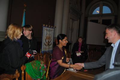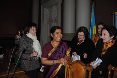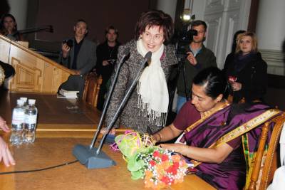 Голова Східноєвропейського інституту розвитку, відома жінка-науковець поділилась з гостями зустрічі своїми думками про Україну та Індію, мовну та культурну проблематику, а також про потенційну співпрацю. Окрім правозахисної діяльності Мрідула Гош присвятила себе науці та творчості. Вона відомий політолог, економіст, культуролог, журналіст, а також талановитий поет та перекладач. Завдяки її роботі твори 45 українських поетів зазвучала бенгальською мовою, в тому числі – поезії Тараса Шевченка, відзначення 200-ліття якого була присвячена зустріч.