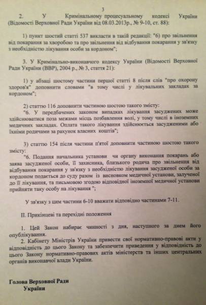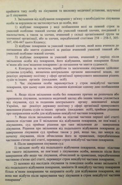 1. Звільнення засудженої від відбування покарання з метою лікування за кордоном можливе за чітко визначених умов;