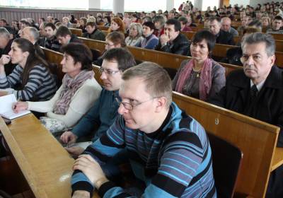 Відкриваючи нараду, ректор НУ “Львівська політехніка”, голова Ради ректорів Львівщини професор Юрій Бобало тепло привітав її учасників (а їх прибуло до Львова 537 осіб). Він також представив посадових осіб, котрих уповноважили донести до присутніх у залі ті завдання й вимоги, які випливають з нинішніх Умов прийому до вищих навчальних закладів у 2014 році. Це, зокрема, головний спеціаліст сектору міжнародних освітніх програм Департаменту вищої освіти МОН Олег Януш, головний державний інспектор управління контролю за діяльністю вищих навчальних закладів міністерства Валентина Проценко, начальник відділу реєстру державного підприємства “Інфоресурс” Віктор Анохін, директор Львівського регіонального центру оцінювання якості освіти Лариса Середяк.