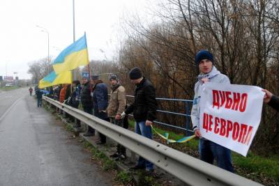 Гасла, які скандували учасники акції, були промовистими: «Україна – це Європа!», «Дубно за ЄС!», «Ми – європейці!». Таким чином вони висловлювали свою незгоду із діями влади щодо фактичного згортання євроінтеграції та відмови підписання Угоди про асоціацію з Європейським Союзом.