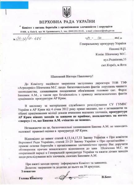 26 листопада, о 9.00 в будівлі Комітетів Верховної Ради України ( вул. Садова , 3а ) відбулася передача представникам апарату ВР України 891 звернення громадянина до народних депутатів України з проханням про подачу депутатських запитів Генеральному прокурору України та Голові СБ України щодо припинення діяльності на території смт . Форос організованою збройної злочинної групи.