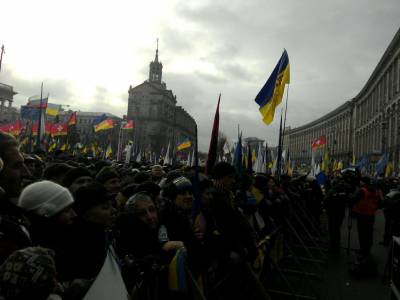 Лідери опозиційних сил Олег Тягнибок (ВО «Свобода»), Арсеній Яценюк (ВО «Батьківщина»), Віталій Кличко («УДАР») уже піднялися на сцену Майдану.Також на сцені перебувають громадські та студентські активісти, відомі діячі мистецтва і культури.