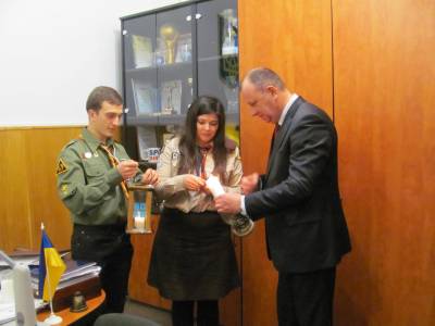 Пластуни запалили Вогонь миру в кабінеті начальника управління Юрія Майбороди Львівщини та побажали, щоб він допомагав у роботі й налаштовував на добрі справи.