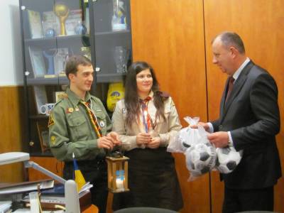 Відтак Юрій Майборода запевнив, що Вифлеємський вогонь миру тепер зможе потрапити до керівників усіх молодіжних та спортивних громадських організацій Львівщини й подарував пластунам комплект футбольних м’ячів.