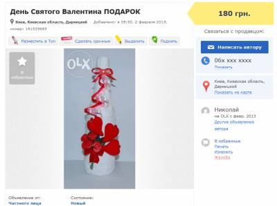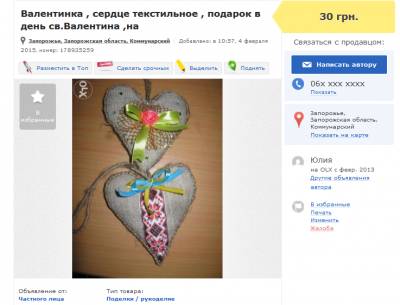 День закоханих не обходиться без традиційних валентинок. Майданчик OLX зібрав різноманітні пропозиції українських рукодільниць, котрі продають свої вироби з допомогою розміщення безкоштовних оголошень. Майстри власними руками виготовляють святкові валентинки з текстилю, фанери, гіпсу, дерева, металу, льону, соломи, пінопласту, шоколаду і навіть хутра норки.