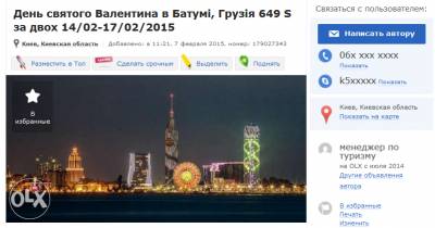 Предложений поехать за границу намного меньше. От $649 за двоих нужно заплатить за романтическое путешествие в Грузию. 3 ночи на Кипре обойдутся в 260 евро. Традиционно предлагают туры выходного дня в разных европейских государствах, а также пляжный отдых в теплых странах.