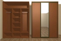 - Раздвижные двери. Они всегда применяются в шкафах-купе, которые позволяют значительно экономить на площади, имея большие размеры внутри. На данный момент эти шкафы пользуются большой популярностью. Они могут быть двухдверные, трёхдверные, четырехдверные. Его передняя сторона может быть любого цвета, рисунка, витража или просто ДСП, или в комплекте зеркало с какими либо отделками.