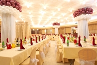 Для любителей классического стиля, роскоши, изысканности и галантности, прекрасно подойдет зал «Юбилей Gold». Также не стоит забывать о большом пространстве, позволяющему поместить в себя около 400 человек.