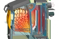 Для того, чтобы эффективно сжигать дерево, традиционной схемы твердотопливного котла недостаточно, поскольку в этом случае поленья быстро прогорают, а значит приходится часто подбрасывать дополнительные порции. Выход есть в использовании обратной (нисходящей) схемы горения, которая базируется на явлении пиролиза - выделение летучей фракции в условиях повышенной температуры и нехватки кислорода. Как же работает пиролизный котел на дровах? На практике, это происходит следующим образом:в верхнюю камеру загружается топливо. В нижней части расположена топка, как правило, обложенная керамическим катализатором. Соединены эти камеры керамической форсункой, через которую вниз горит твердая и газообразная фракция. Благодаря керамике, поддерживается высокая температура стенок, что обеспечивает одновременно и пиролиз, и подсушивание древесины. Мощность данного котла регулируется за счет количества воздуха, вдуваемого вентилятором в нужные зоны. Весь процесс контролируется автоматикой котла, что позволяет существенно увеличить срок службы на одной загрузке, экономичность, эффективность и экологичность.
