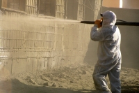 - Сухой. При этом готовая смесь бетона подается в специальное сопло, где происходит ее смешивание с водой, которая подается под огромным давлением. Подобные установки нашли довольно широкое применение на промышленных строительных работах в горнодобывающей, гидротехнической и прочих отраслях;
