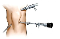 Артроскопия – современный метод диагностики и лечения патологий суставов различного происхождения. Данная хирургическая манипуляция является минимально инвазивной, то есть не предполагает произведение больших разрезов кожных покровов. Для доступа к содержимому сустава достаточно сделать несколько проколов, через которые вводятся инструменты, необходимые для осмотра и лечения больного костного сочленения. Артроскопия проводится при помощи специального аппарата эндоскопического типа – артроскопа, который оборудован маленькой камерой, позволяющей оценить состояние костей, сухожилий, связок и других компонентов сустава в реальном времени через монитор компьютера. Артроскопическая хирургия проводится в диагностических и лечебных целях при различных травмах суставов (коленных, плечевых, тазобедренных, локтевых, голеностопных или лучезапястных) и позвоночника.