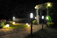- Вбудовувані - монтуються безпосередньо в сходи, в стіни будинку, в бордюри навколо клумб, іноді - в садові доріжки. Їхнє світло може створювати декоративний ефект, але основна функція таких світильників - розмежування простору.