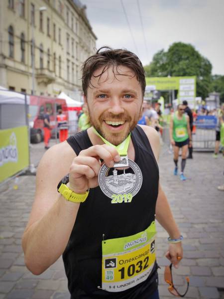 Олександр Попов почав захоплюється бігом 2 роки тому, а брати участь у бігових марафонах на початку цього року. На львівському напівмарафоні Олександру вдалося перевершити свій попередній результат і прибігти на 6 хв раніше, ніж місяць тому на Kyiv Euro Marathon. Тоді час пробігу становив 1:46:20.