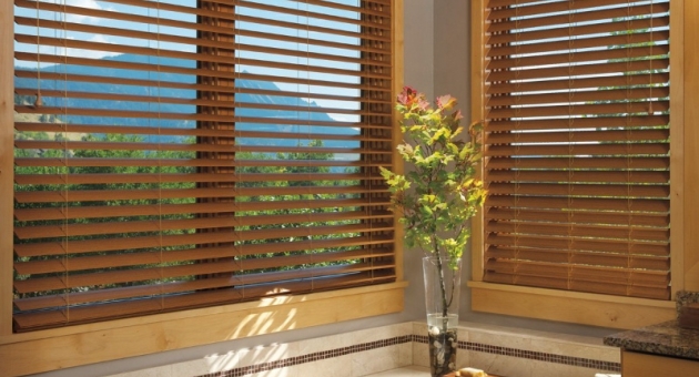 Дерев'яні ламелі горизонтальних жалюзі стануть доповненням класичного кабінету, особливо, якщо є дерев'яні меблі в тон. Шикарно виглядають і елітні шкіряні моделі, причому в будь-якому кольорі: