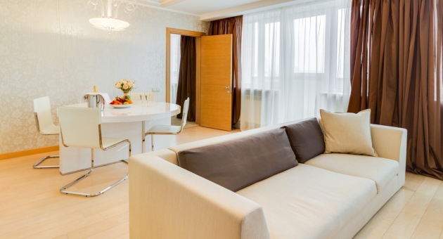- Впечатляющий номерной фонд. В гостинице представлены различные варианты для размещения. К примеру, в однокомнатном номере «Бизнес» могут остановиться 2 человека. Небольшой семье стоит сделать выбор в пользу «Полулюкса» либо «Люкса». Компаниям и VIP-гостям отлично подойдёт трёхкомнатный «Президентский люкс»;