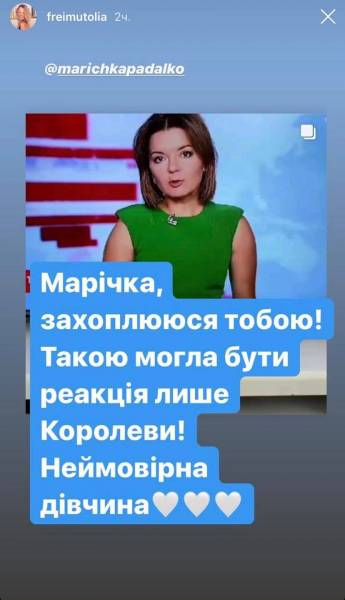 - Фреймут : «Марічка, захоплююся тобою! Такою могла бути реакція лише королеви! Неймовірна дівчина!».