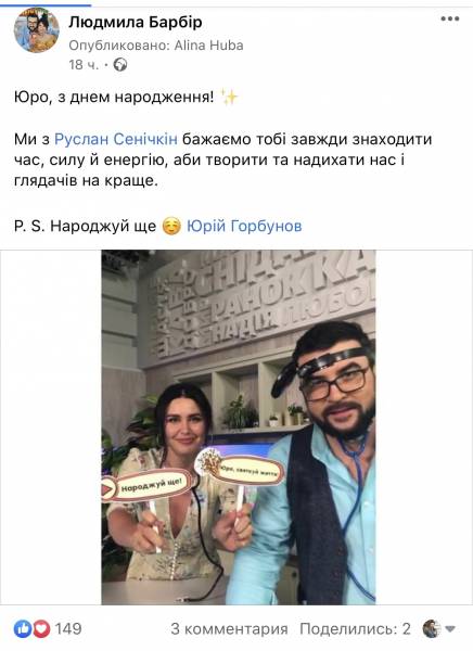 Ведуча ТСН Лідія Таран згадала, як Горбунов вів ранкову програму і підкреслила, що телеведучий має властивість молодіти: