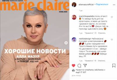 Також Алла Мазур отримала неймовірну кількість коментарів та лайків від глядачів: «Неймовірно стильний новий образ і такі глибокі сильні слова. Аллочко, Ви не припиняєте вражати новими гранями своєї особистості. Хай цей рік принесе суцільне щастя!», «Ви неймовірні!!!!!Новий образ дуже стильний!!!Вітаю!!!Здоров’я вам і рідним!», «Як круто! Ви дуже стильна, помолодшали на кілька років! Захват!», «Ви приклад сміливої, сильної та життєрадісної людини! Вітаю з Вашою перемогою – Ви найкраща!», «Яка ж Ви красунечка!!! Дуже Вам пасує такий образ! Здоров’я Вам на многая літа!», «З Днем народження, Аллочко! 1+1, вам неймовірно пощастило щоденно бачити і мати в штаті таку неймовірну людину! Я в захваті від Алли як і мільйони її прихильників! Головне, будьте здорові!», «Бомбезна, сексуальна, стильна! Дай Вам Бог здоров'я і сили!!! Рада за Вас! Дякуючи інтернету ми всі стаємо ближчі і маємо змогу висловити радість особисто!».