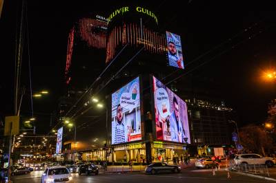 Такі гігантські екрани сяють в центральній частині Манхеттена в Нью-Йорку на Таймс-сквер, в Дубаї в ТРЦ Дубай Молл і Бурдж Халіфа, у Токіо.