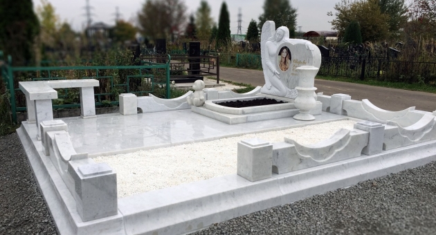 - Мрамор. Это отличный материал для вырезания очень замысловатых узоров, а это значит, что надгробия из этого материала могут быть красивыми и продуманными. Что же касается цен на памятники из мрамора, то они также невысокие и вполне доступны обычному человеку. Одним из основных недостатков мрамора является то, что когда он подвергается воздействию низких уровней кислоты, которые содержатся в дождевой воде, а это означает, что со временем шрифты будут не такие выразительные, как изначально.