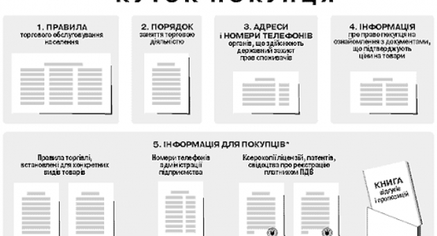 Варто зазначити, що такий необхідний атрибут будь-якого закладу, як «Куточок покупця» дає суттєву перевагу перед конкурентами в залученні відвідувачів. Адже позитивні відгуки з книги пропозицій, наявність ліцензійної та дозвільної документації красномовно вказує на серйозність і респектабельність магазину або кафе, говорить про увагу до споживачів, і надає можливість відобразити свою думку про послуги. Наявність інформаційного стенду непрямою гарантією якісного обслуговування в закладі.