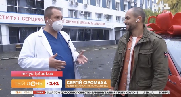 За перші два тижні благодійної ініціативи «Твоя мрія» завдяки щирим серцям глядачів 1+1 було зібрано трохи більше 1,5 мільйони гривень. За перший 1 мільйон 25 тисяч гривень вже встигли купити два німецькі реанімаційні бокси для немовлят Lifetherm, що рятують життя та дві спеціальні медичні тумби у відділення «акушерська кардіологія» в Інституті Амосова. 2 листопада червона машинка – головний благодійний подарунок у «Твоїй мрії» разом з ведучим шоу «Твій день» Володимиром Рабчуном завітали до лікарні аби передати першу термінову допомогу. Зустрічали гостей разом з обладнанням директор Інституту Амосова, учень самого Миколи Амосова, відомий кардіохірург Василь Лазоришинець та головний лікар-кардіохірург Сергій Сіромаха. Все це відбувалося у прямому ефірі «Твого дня» - зі Стасею Ровінською та Тімуром Мірошниченко у студії.