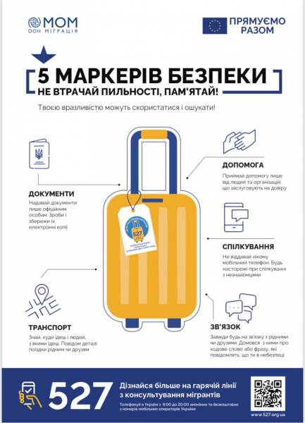 “Ці 5 маркерів дуже важливі, адже дають змогу уникнути експлуатації. Всі їх мають знати. Вони допоможуть визначити шахрайство або інші злочинні практики. Безпека передусім. Користуйтесь гарячою лінією, консультуйтеся. 527 - передусім”, - зазначив в ефірі Сніданку з 1+1 заступник голови представництва ЄС в Україні Ремі Дюфло.