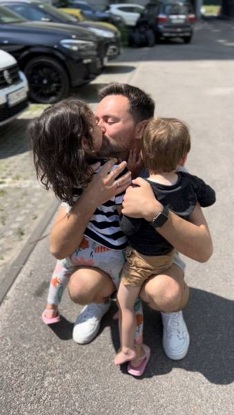 «Коли всі разом, значно простіше вирішувати будь-які питання. А коли між нами тисячі кілометрів, це зовсім інша історія. Ба більше – дітям потрібен батько, а батьку потрібні діти. Вони вже добу не злазять з мене і це прекрасно», - каже ведучий.