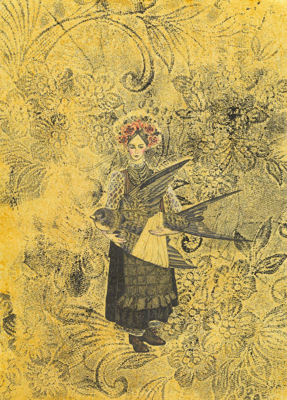 У творчості Вікторії Гуніної природа — не тло, а співтворець. Вона використовує куркуму, кольорові олівці, лінери, туш, монотипію. У кожній роботі — живе дихання. Гілка. Пір’їна. Сліди. Усе справжнє. Усе має значення. Усе — частина розмови.